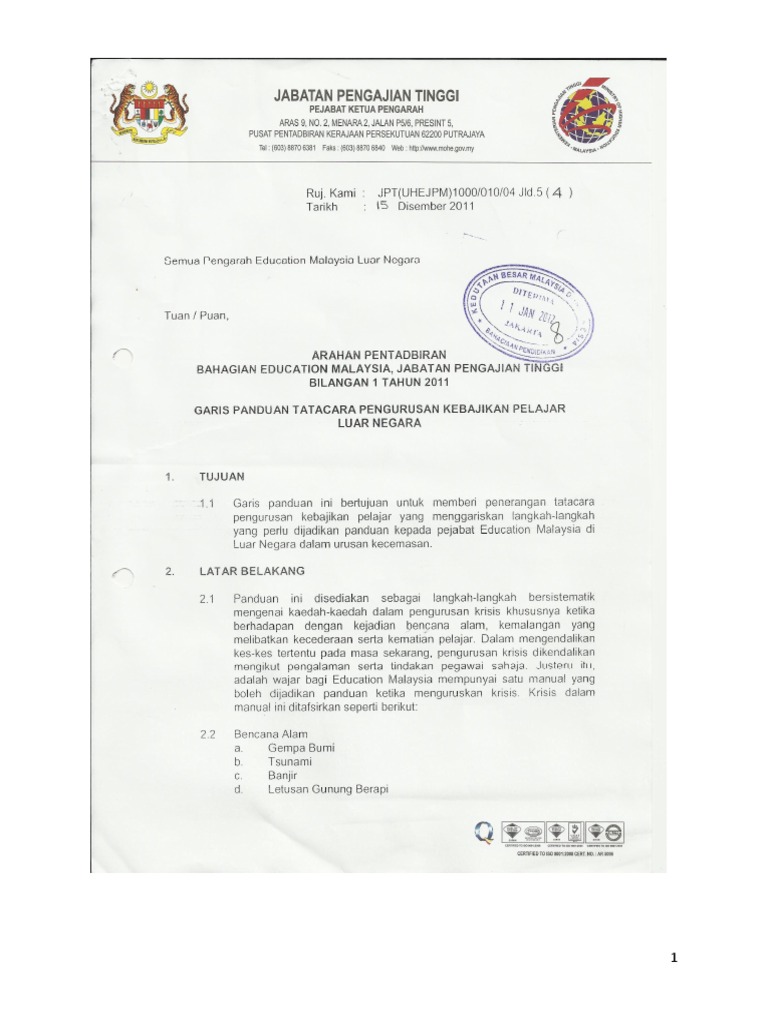 Arahan Pentadbiran Bem Jpt 1 2011