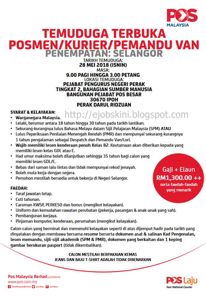 Temuduga Terbuka Pos Malaysia Berhad Pada 28 Mei 2018