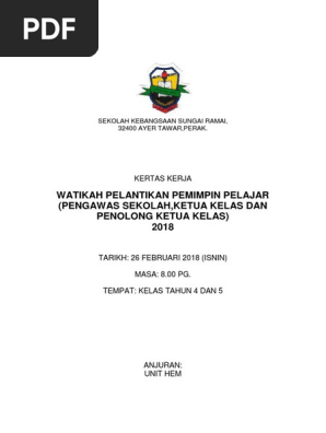 Kertas Kerja Pelantikan Pengawas Ketua Kelas Dan Penolong Ketua Kelas
