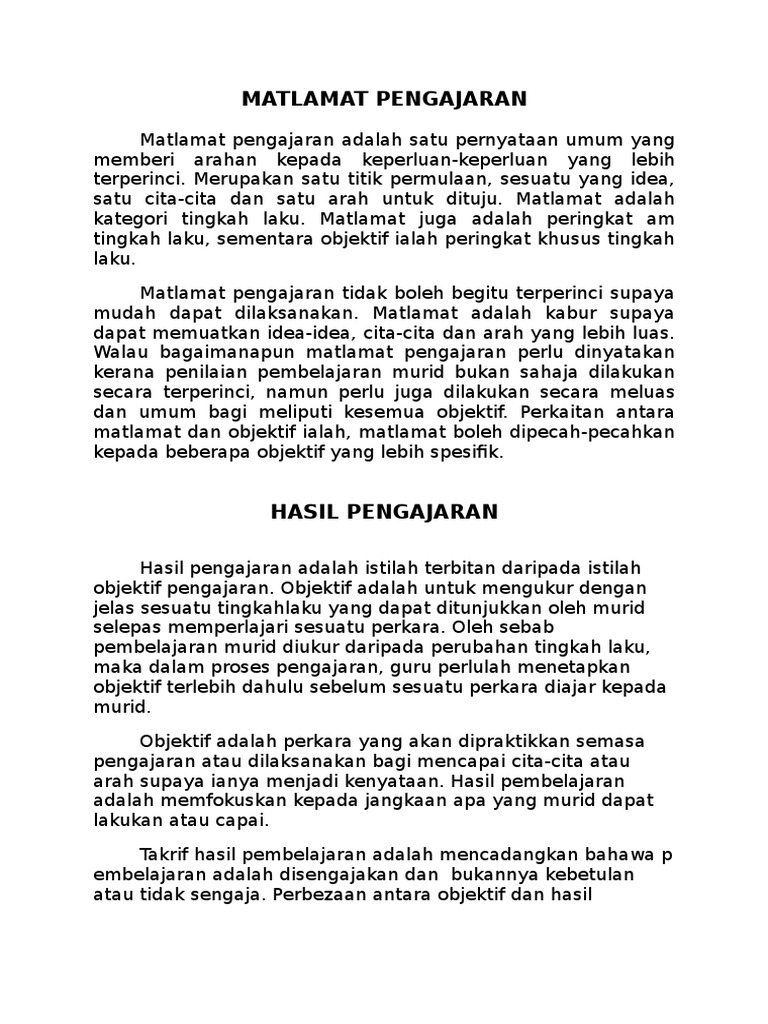 Matlamat Dan Objektif Pengajaran Dan Pembelajaran