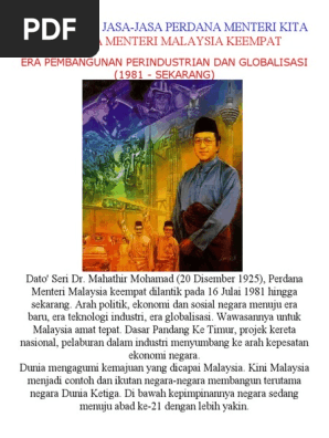 Abu Tun Dr Mahathir Mohamad Perdana Menteri Malaysia Keempat 1981 2002 Pencetus Malaysia Negara Maju
