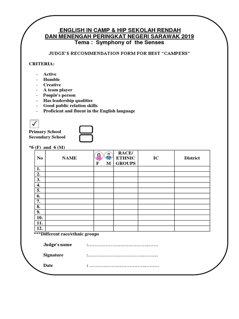 Judge S Form English In Camp Sekolah Menengah Peringkat Daerah Kuching 2019