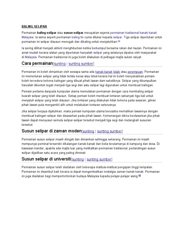 Warisan Melayu Permainan Baling Selipar Atau Susun Facebook
