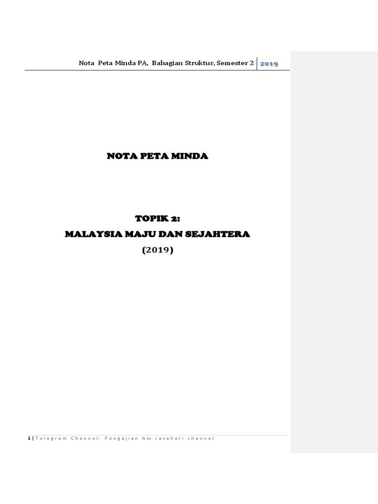 Nota Peta Minda Malaysia Maju Dan Sejahtera 1 2019