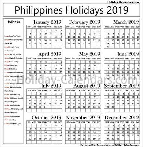 Philippines Public Holidays 2019 2019 Printable Calendar Templates