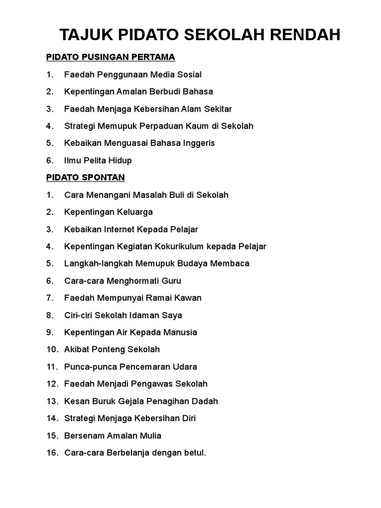 Contoh Soal Shu Contoh Pidato Bahasa Melayu Sekolah Rendah