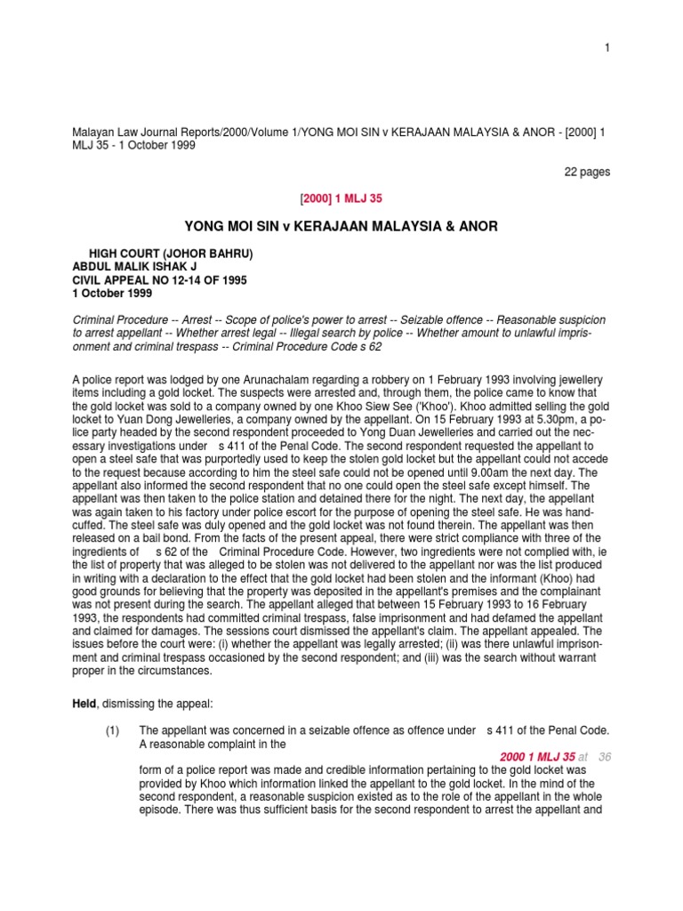 Yong Moi Sin V Kerajaan Malaysia Arrest Criminal Procedure In South Africa