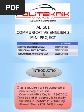 Politeknik Sultan Haji Ahmad Shah Spmp Waktu Jka Pdf 3 Ae101 Communicative English 1 Edward Ong