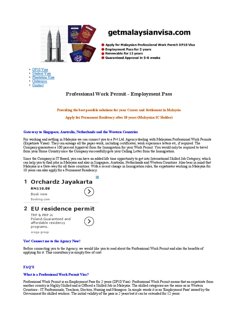 Dp10 Malaysia Professional Work Permit Employment Pass Professional Work Permit 60 10 240 9738 Top Rated 1 Recruitment Agencies In Pakistan For Gulf