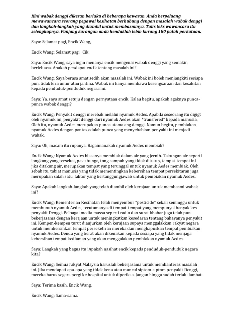 Contoh Contoh Karangan Sekolah Menengah Contoh Karangan Langkah Langkah Untuk Mencegah Deman Denggi