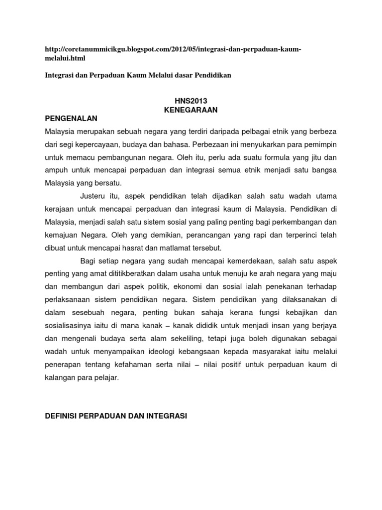 Pdf Kajian Mengenai Hubungan Etnik Dan Integrasi Nasional Norazila Binti Nordin Student Academia Edu