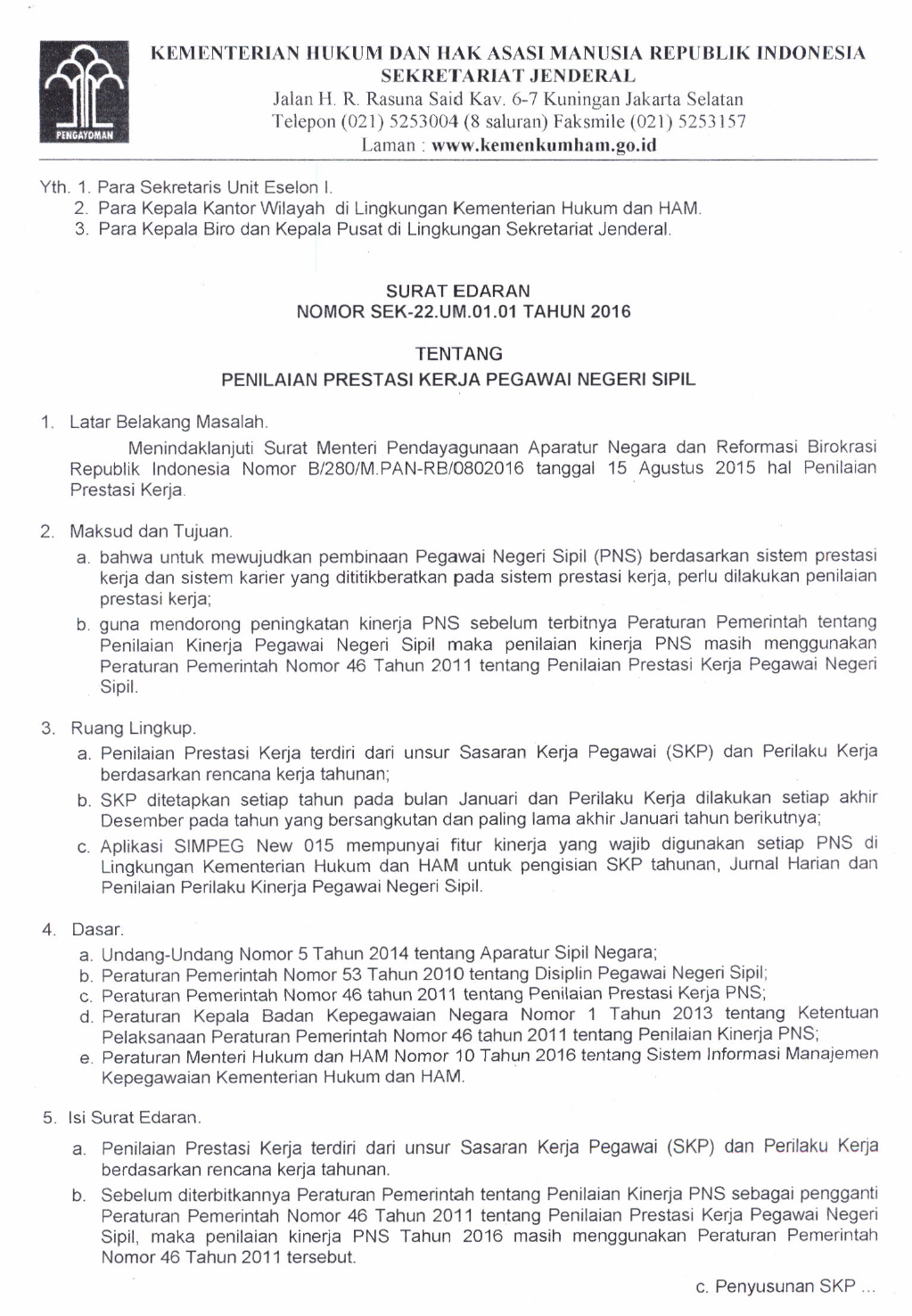 Surat Edaran Tentang Penilaian Prestasi Kerja Pegawai Negeri Sipil Sahabat Pemasyarakatan