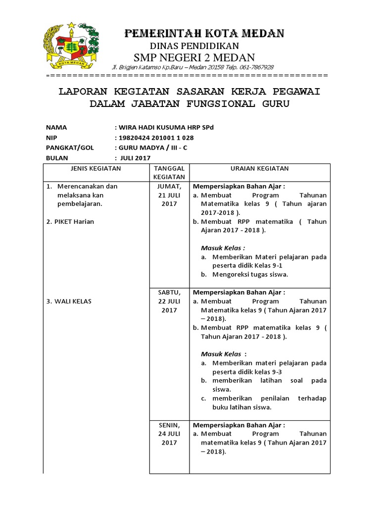 Skp Bulanan Juli Smpn2 Medan