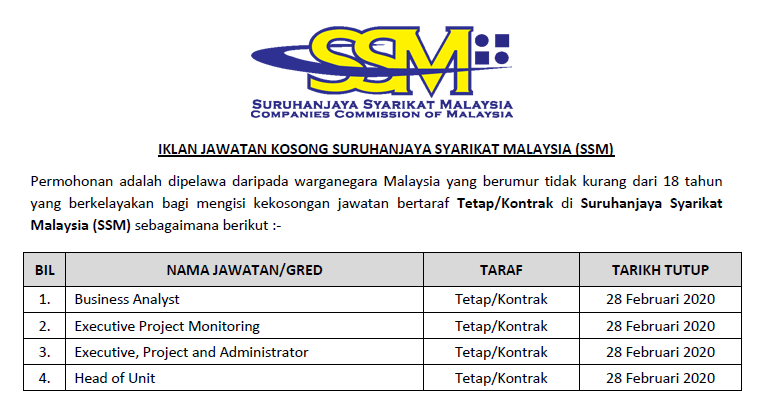 Jawatan Kosong Terkini Suruhanjaya Syarikat Malaysia Ssm Kerja Kosong Kerajaan Swasta