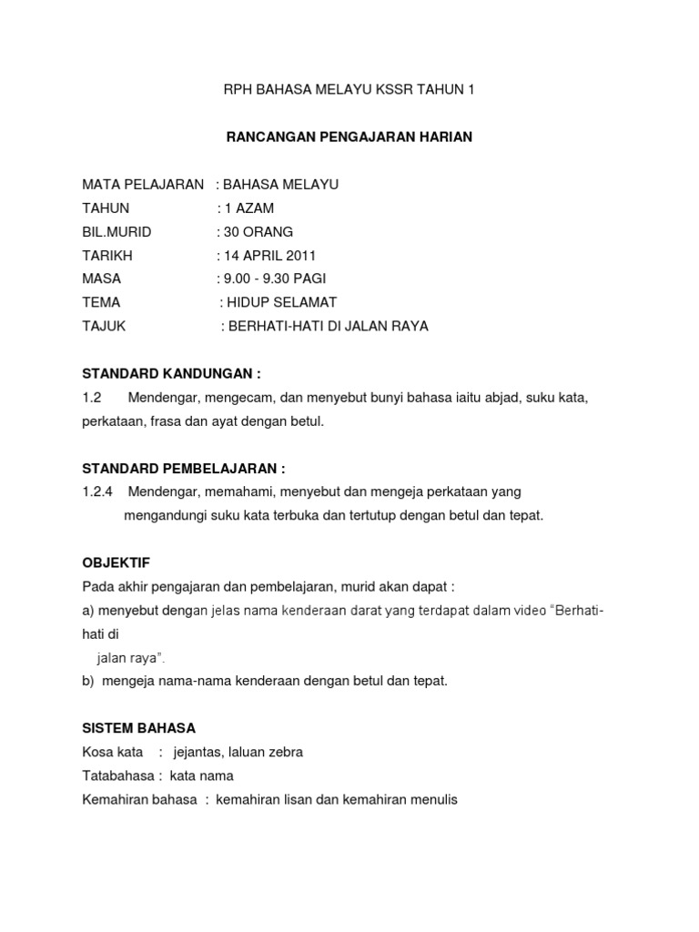 Doc Rph Kssr Bahasa Melayu Tahun 1 Tahun 2 Docx Nia Marara Academia Edu