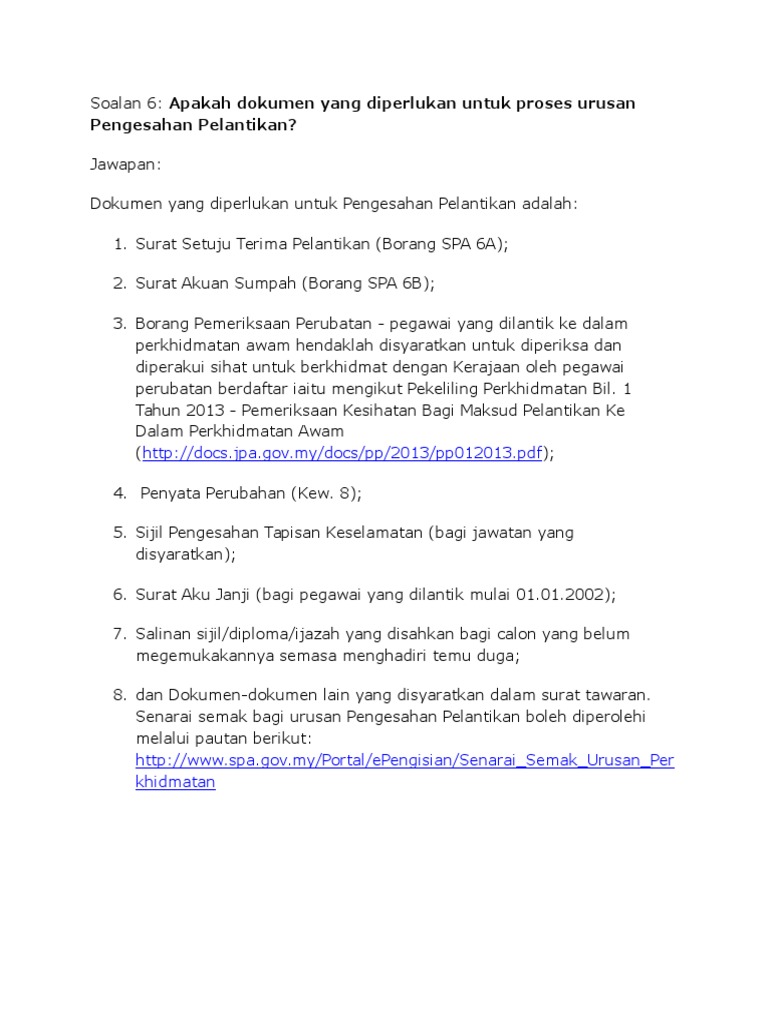 Prosedur Perkhidmatan Pkdkt Prosedur 6a Ii Surat Akuan Berkanun Borang Spa 6c 2014 Iii Surat Akuan Doktor Borang Permohonan Pemeriksaan Perubatan Untuk Pelantikan Ke Dalam