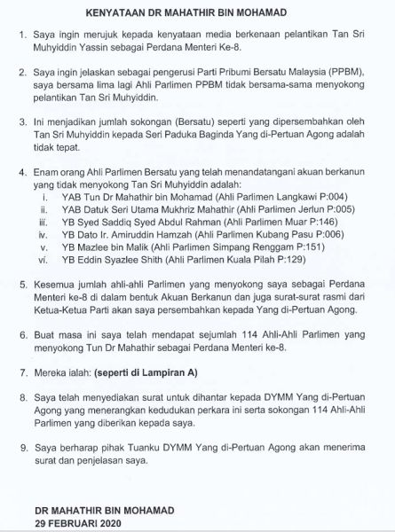 Ph Kemuka Senarai 114 Mp Bukti Sokong Tun M Calon Pm Semasa Mstar