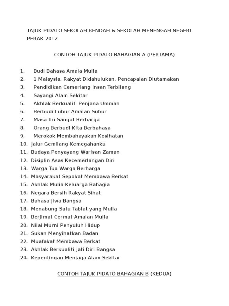 Tajuk Pidato Sekolah Rendah Doc