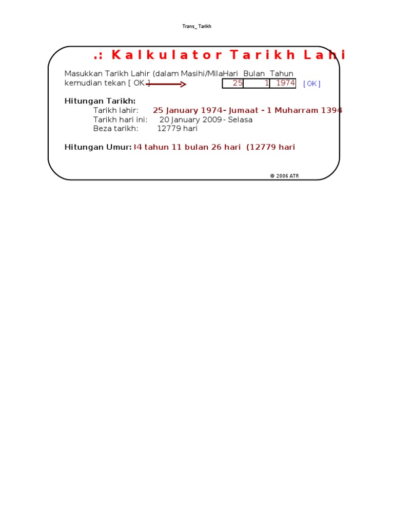 Kalkulator Tarikh Lahir Masukkan Tarikh Lahir Dalam Masihi Miladi Hari Bulan Tahun Kemudian Tekan Ok