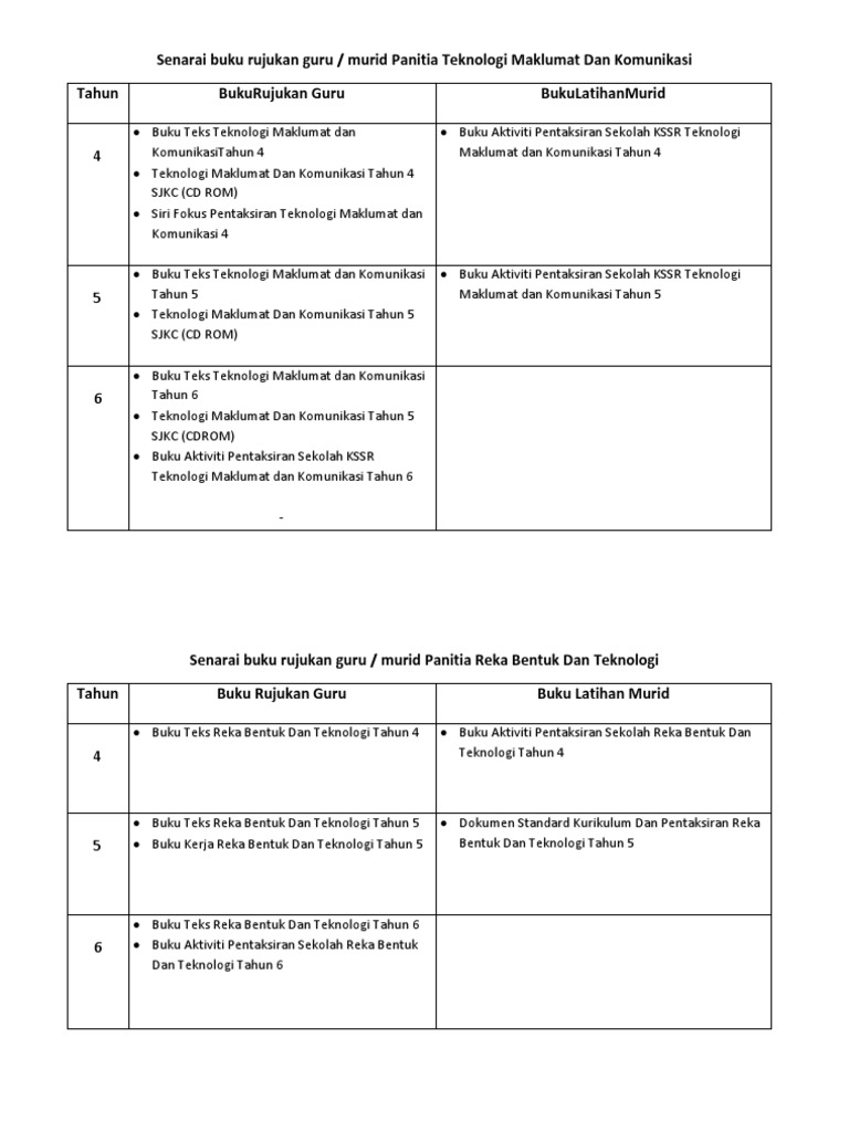 Senarai Buku Rujukan Guru Murid Panitia Teknologi Maklumat Dan Komunikasi Tahun Bukurujukan Guru Bukulatihanmurid