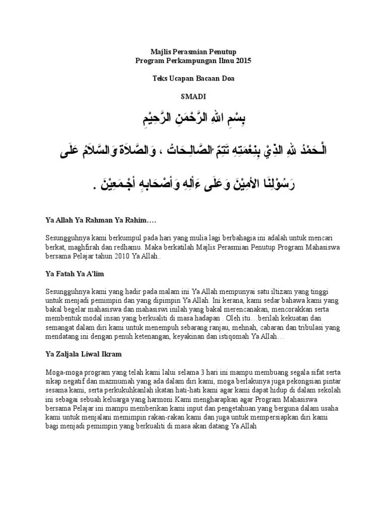 Pdf Teks Doa Sempena Majlis Perasmian Minggu Haluan Siswa Muhammad Asyraf Academia Edu