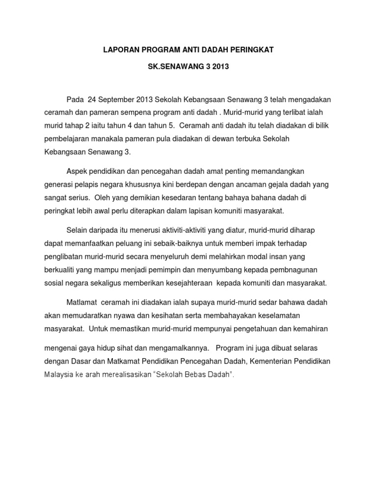 Doc 46021340 Kertas Kerja Minggu Anti Dadah Sekolah Kebangsaan Ajis Kadir Academia Edu