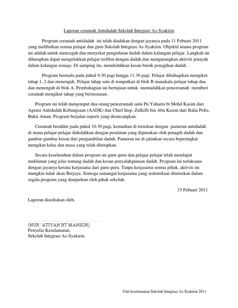 Laporan Ceramah Antidadah Dan Salah Laku Pelajar