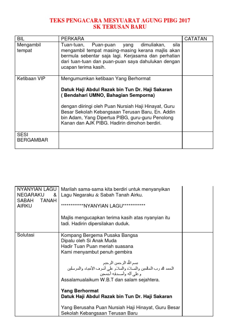Teks Pengacara Mesyuarat Agung Pibg 2017