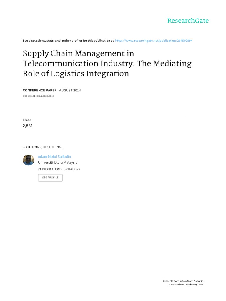 Supply Chain Management In Telco Industry R2 Supply Chain Management Supply Chain