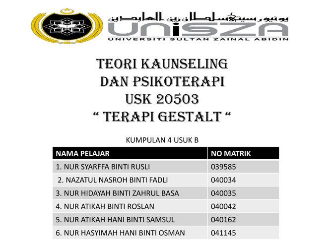 Teori Kaunseling Dan Psikologi Kumpulan 4 B Terapi Gestalt