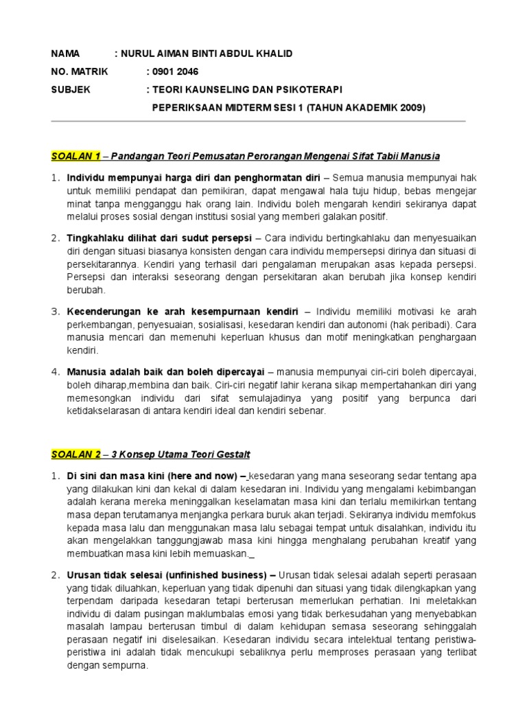 Teori Kaunseling Dan Psikoterapi Lessons Tes Teach