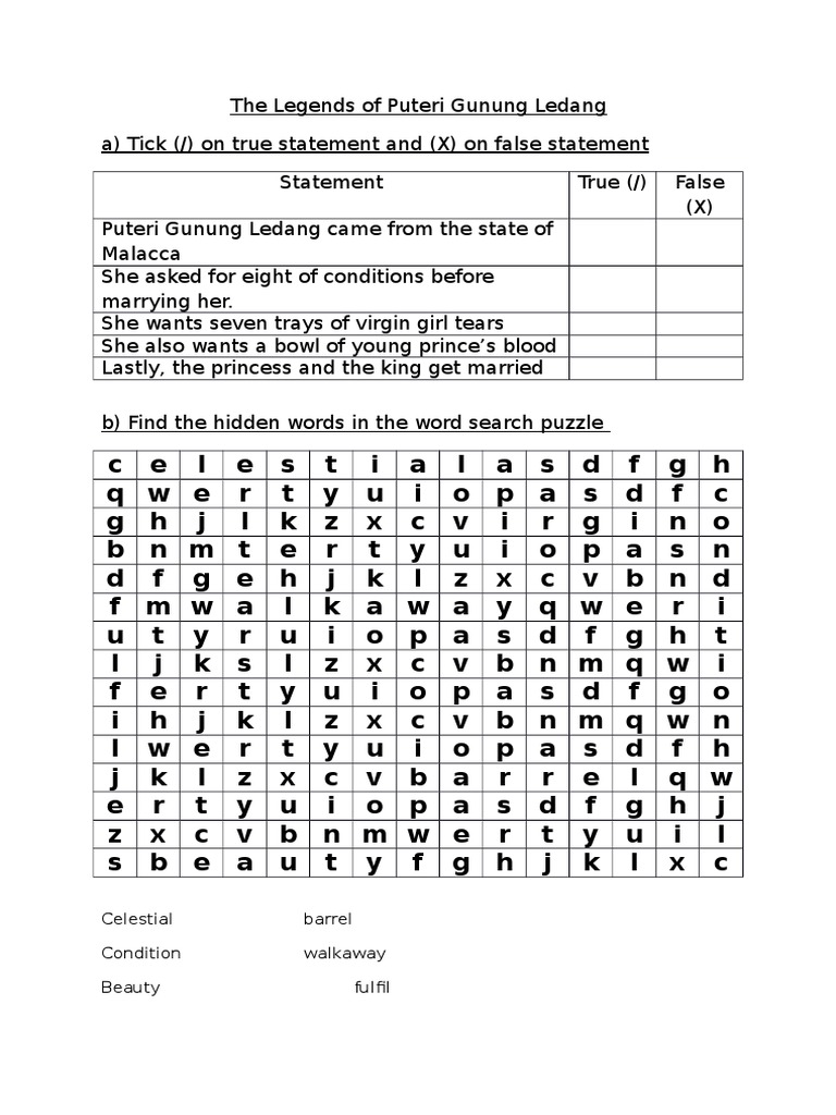 The Legends Of Puteri Gunung Ledang Word Search Traditional Stories