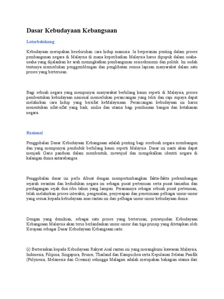 Dasar Kebudayaan Docx Document