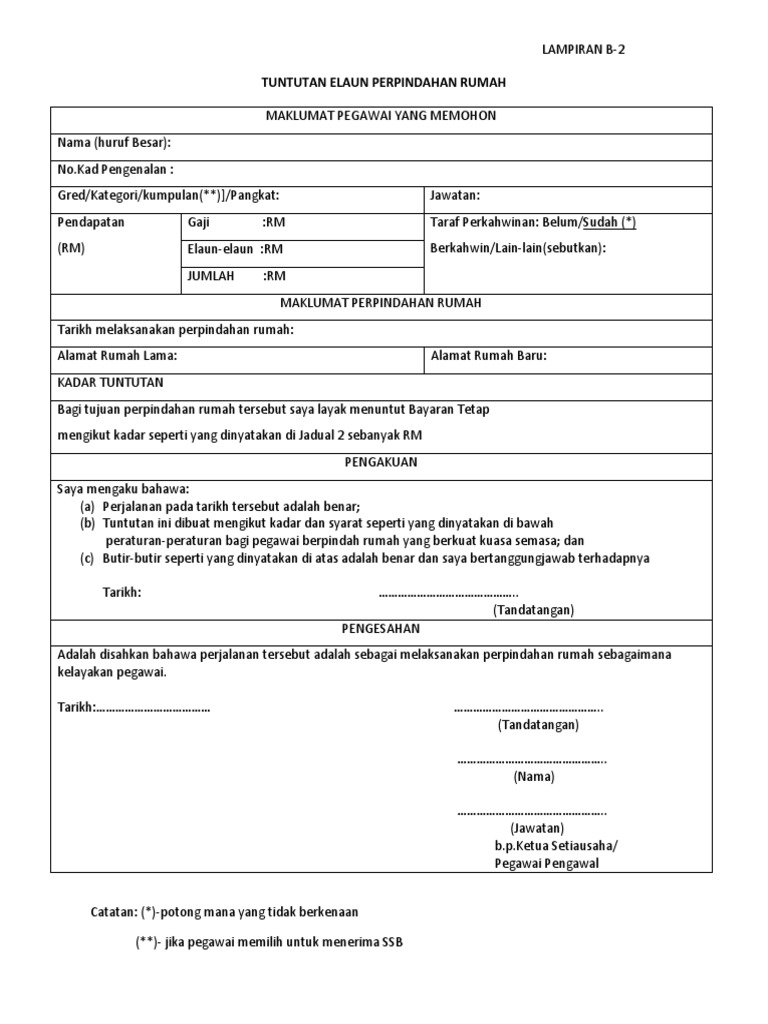 Tuntutan Elaun Perpindahan Rumah Lampiran B 2 Tuntutan Elaun Perpindahan Rumah Maklumat Pegawai Pdf Document