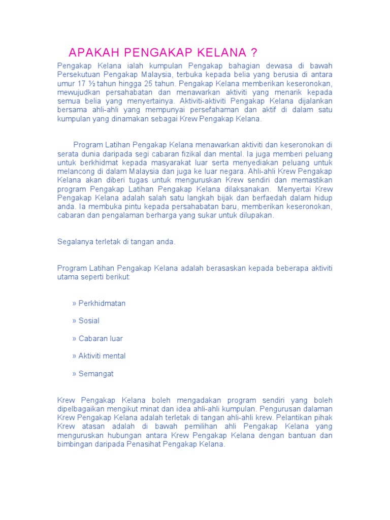 Perkhemahan Pelantikan Pengakap Kelana Negeri Persetiaan Pengakap Undang Undang Pengakap Pdf Document