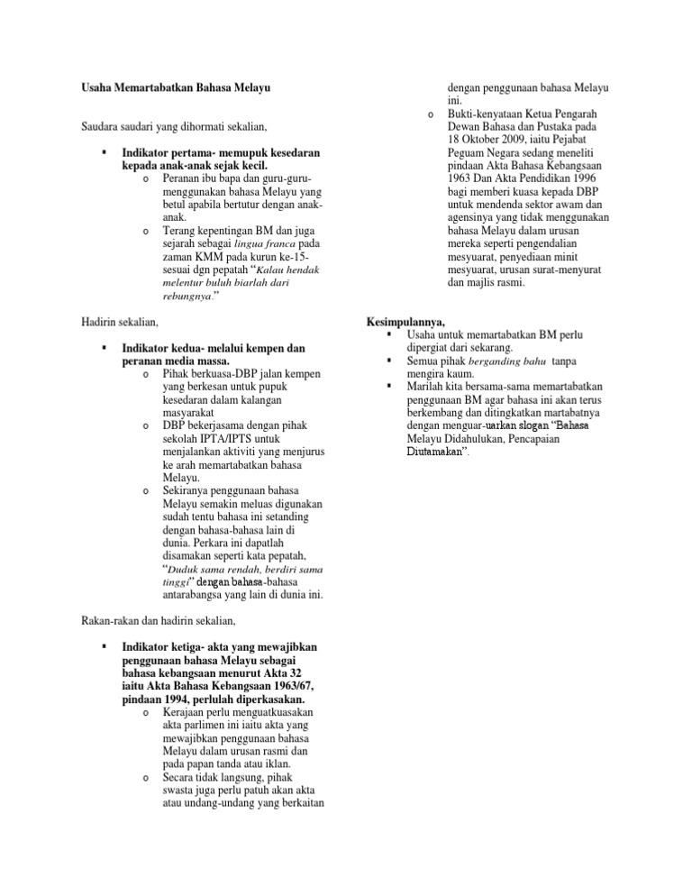 Usaha Memartabatkan Bahasa Melayu Karangan Spm
